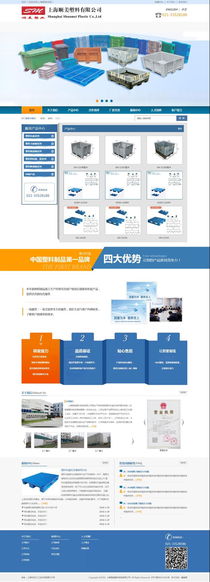 上海順美塑料制品有限公司是生產(chǎn)各種規(guī)格塑料托盤及各種塑料制品(如啤酒箱和物流周轉(zhuǎn)箱等)的專業(yè)企業(yè)。公司坐落于世界知名的上海市松江東部工業(yè)區(qū),創(chuàng)建于2003年,占地面積20000平方米,現(xiàn)有固定資產(chǎn)8000萬元,從業(yè)員工200名(其中高級技工12名、技術(shù)人員27名)。公司自成立以來,大膽的引進(jìn)德國先進(jìn)的生產(chǎn)設(shè)備和技術(shù),以市場需求為導(dǎo)向,運(yùn)用科學(xué)的配方指導(dǎo)生產(chǎn)作業(yè),憑著優(yōu)良的技術(shù)及誠信的理念,以高技術(shù)含量、高質(zhì)量品位為標(biāo)準(zhǔn)。
