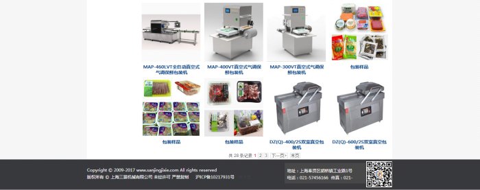 上海三景機械有限公司是一家專注于真空包裝和氣調保鮮包裝的研發(fā)、生產和銷售為一體的生產型企業(yè),產品應用于食品、冷鮮肉、果蔬、海產品、休閑食品、醫(yī)療產品、電子、科研等多個領域.特別在食品、肉制品、醫(yī)藥、海產品、果蔬類的真空及氣調保鮮包裝領域上做出了重要貢獻.主要生產產品有:DZL系列全自動拉伸真空包裝機、MAP系列盒式氣調保鮮包裝機、DZ(Q)系列真空(充氣)包裝機。