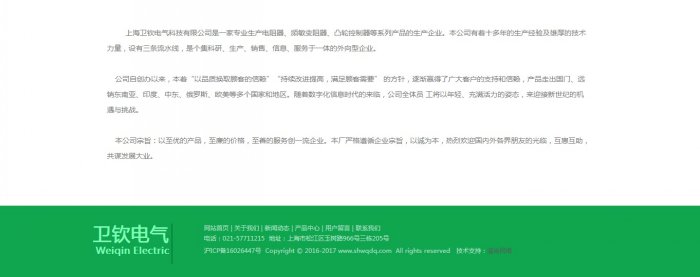 上海衛(wèi)欽電氣科技有限公司是一家專業(yè)生產(chǎn)電阻器、頻敏變阻器、凸輪控制器等系列產(chǎn)品的生產(chǎn)企業(yè)。本公司有著十多年的生產(chǎn)經(jīng)驗(yàn)及雄厚的技術(shù)力量,設(shè)有三條流水線,是個(gè)集科研、生產(chǎn)、銷售、信息、服務(wù)于一體的外向型企業(yè)。公司自創(chuàng)辦以來(lái),本著“以品質(zhì)換取顧客的信賴”“持續(xù)改進(jìn)提高,滿足顧客需要” 的方針,逐漸贏得了廣大客戶的支持和信賴,產(chǎn)品走出國(guó)門、遠(yuǎn)銷東南亞、印度、中東、俄羅斯、歐美等多個(gè)國(guó)家和地區(qū)。隨著數(shù)字化信息時(shí)代的來(lái)臨,公司全體員 工將以年輕、充滿活力的姿態(tài),來(lái)迎接新世紀(jì)的機(jī)遇與挑戰(zhàn)。
