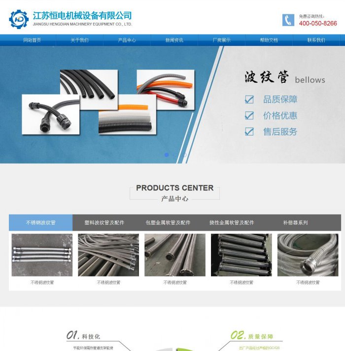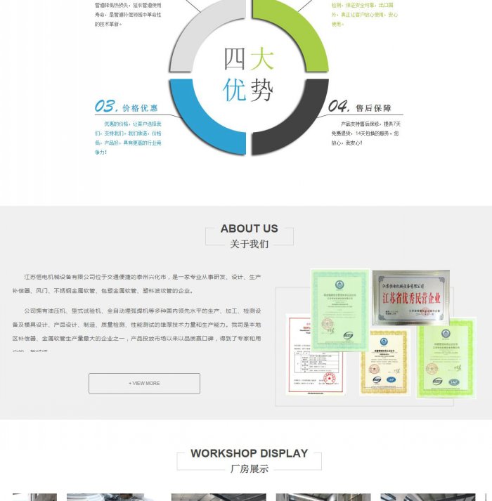 網(wǎng)站特點(diǎn):首頁采用企業(yè)型網(wǎng)站排版方式,以藍(lán)色為主題色,突顯企業(yè)實(shí)力并內(nèi)容豐富。首頁包含產(chǎn)品中心版塊,核心優(yōu)勢版塊,關(guān)于我們版塊,廠房展示版塊,新聞資訊版塊。