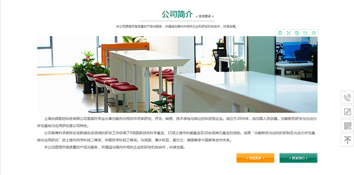 上海先輝醫(yī)藥科技有限公司是國內(nèi)專業(yè)從事光敏劑與相關(guān)中間體研究、開發(fā)、銷售、技術(shù)承包與轉(zhuǎn)讓的科技型企業(yè)。成立于2006年,由歸國人員創(chuàng)建。光敏新藥研發(fā)與光動力療法基礎(chǔ)與應(yīng)用研究是公司特色。公司首席科學(xué)家在該領(lǐng)域的研發(fā)工作獲得了9項國家自然科學(xué)基金、15項上海市科委基金及20余項其它基金的資助。成果“光敏新藥與試劑的研制及光動力療法基礎(chǔ)與應(yīng)用研究”獲上海市藥學(xué)科技二等獎、中國藥學(xué)科技三等獎。與英國、澳大利亞、愛爾蘭、美國等多個國家有合作關(guān)系。