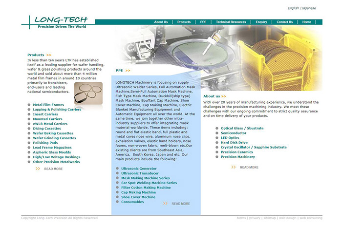 公司簡(jiǎn)介:Long-Tech Precision Machinery Limited(LTP) is a leading manufacturer, supplier and exporter of high precision products and services for Semiconductor, Optics, LED, Sapphire Substrates, HDD, Mobile Cover Glass / Glass filter, and Ceramics.