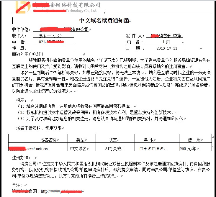 1.最近有很多客戶反應(yīng)收到了中文域名到期的續(xù)費(fèi)通知,如果您之前沒有買過中文域名就不存在續(xù)費(fèi)的說法,他們所謂的續(xù)費(fèi)通知是讓您重新購買一些沒用的中文域名,然后一次性買10年或20年,當(dāng)然價(jià)格也是比較高的,若您收到了相關(guān)續(xù)費(fèi)通知請與我們核實(shí);