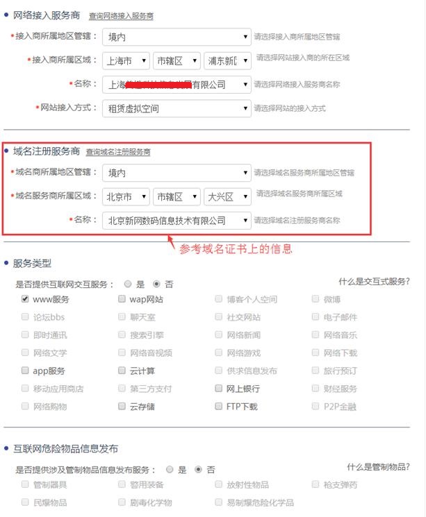⑤域名注冊(cè)服務(wù)商信息按照域名證書上的信息填寫