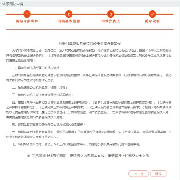 都填好后提交,等待審核就好了,審核通過后有一個(gè)網(wǎng)安備案號(hào)碼。