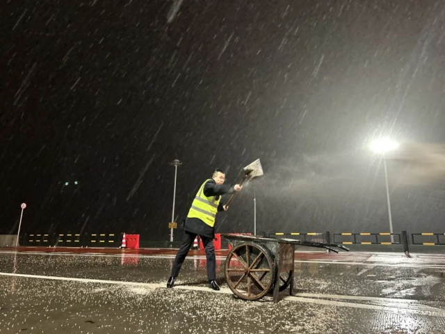 受寒潮天氣影響,1月25日夜至26日凌晨,我省沿淮淮北地區(qū)、大別山區(qū)和皖南山區(qū)溫度驟降,出現(xiàn)雨雪疊加天氣。集團相關單位迅速響應,連夜開展融冰除雪工作,奮力護航人民群眾春節(jié)回家路。截至1月26日上午9時,集團相關營運單位共計出動人員600余人次,機械設備280余臺班,撒布融雪劑600余噸。集團所轄路段路面無積雪,車輛有序通行。