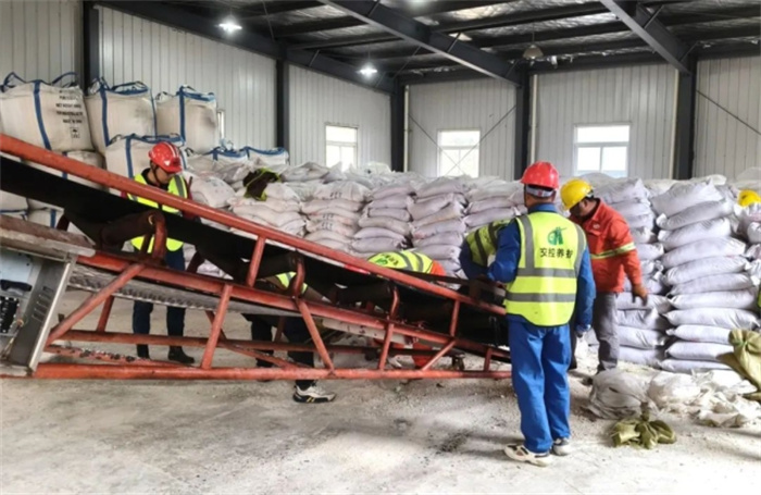 淮南處養(yǎng)護(hù)人員在裝載融雪劑